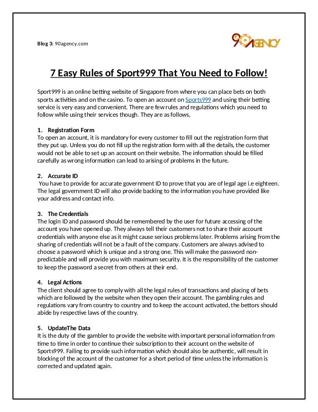 This is to notify you that there will be a hearing regarding proposed changes to Sports Betting Rule 1 General Rules and Regulations, Gaming Rule 8 Rules for Blackjack, and Gaming Rule 10 Rules for. This is the first in a series of articles on the 7 golden rules, first, an overview. Understand the concept of value. This is the first and most critical factor! If you don’t have this, just walk away and leave betting to other people. Sure you might be certain that a 1.33 favorite is going to win, but are the odds being offered giving any. Race & Sports Book Basics We offer a complete range of wagering on all major racing and sporting events. If you have any questions regarding a particular wager or need assistance in any way, please ask a Race & Sports Book representative.